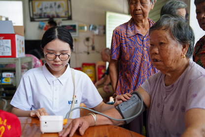 今年夏天,一群学子走进平和县文峰镇前埔村开展“健康惠民”实践,他们搭起临时“摊位”,为村民测血压、协建“健康档案”、科普防疫知识,为健康乡村助力。